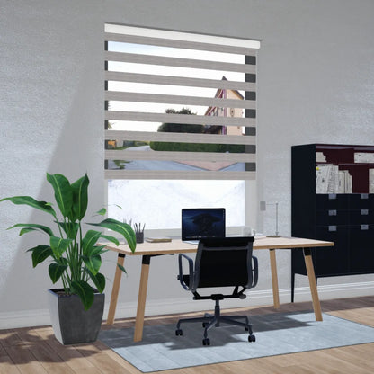 De duo rolgordijnen Puzzle lichtdoorlatend in de kleur lichtgrijs combineren een moderne, rustige uitstraling met optimale lichtregeling en privacy. De dubbele banen van transparante en dichte stof zorgen dat je eenvoudig de gewenste lichtinval en sfeer creëert. De lichtgrijze tint met subtiel patroon geeft een eigentijdse en elegante look, terwijl het daglicht zacht en diffuus binnenkomt.